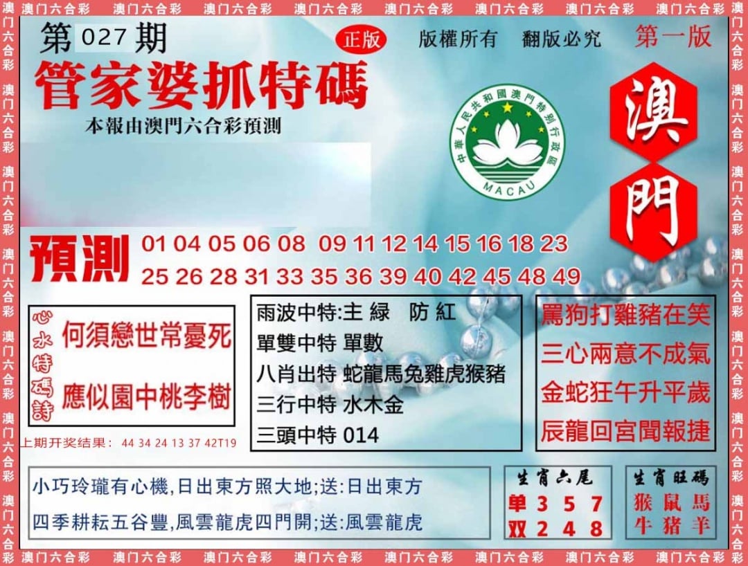027期六肖:【蛇狗猪牛鼠马】~平均押 027期三肖:【蛇狗猪】~~稳准狠 027期壹肖:【蛇】~重点投注 027期十码:【13 49 20 32 19 43 17 41 18 30】 027期五码:【13 49 20 32 19】~资料已确定 027期壹码:【13】~多少买点.包您赚钱! 牢记住澳门港澳天下755885.COM